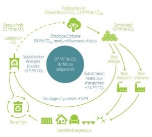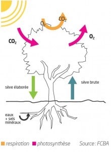 L’arbre, par le phénomène de photosynthèse, absorbe en forêt le CO2 présent dans l’atmosphère. En fin de vie, il se décompose et rejette une partie du carbone retenu pendant sa croissance, une autre partie étant stockée dans le sol. En revanche, s’il est récolté :