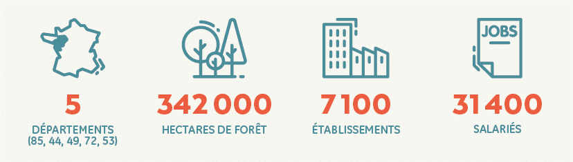 La filière forêt bois est un acteur économique important en Région Pays de la Loire. Avec plus de 31 400 salariés (et 7 100 établissements), la filière bois ligérienne se positionne en 3ème position française, en termes d’emplois. Elle est particulièrement développée autour des activités de transformation : menuiserie, ameublement et construction bois.
