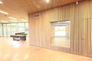 Salle Multisports Luc Abalo – Petit Anjou. Architecte et photo Claude Puaud – Arcature De nouveaux produits sont sur le marché (voir site du contreplaqué et photo de l’intérieur de Minimaousse architecte Fabien Legoff Fabricant : ESB). Pour un style plus industriel on peut opter pour des panneaux en OSB. Des lames de bois peuvent aussi être utilisées en occultations, décoration ou affaiblissement acoustique.