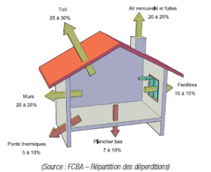 Les murs sont responsables de 20 à 25 % des déperditions d’un bâtiment, la toiture de 25 à 30 %, les planchers bas de 7 à 10%. Avant de se poser la question du changement de son mode de chauffage, mieux vaut étudier la faisabilité de l’isolation des parois extérieures, afin de réaliser une rénovation basse consommation.