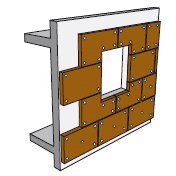La préfabrication de cette ossature rapportée est également possible. L’ossature est assemblée en atelier, l’isolant et le pare-pluie, éventuellement les menuiseries, sont intégrés. Le tout est ensuite transporté et fixé sur le mur existant.