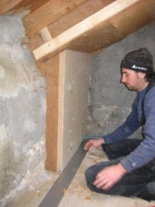 Il s’agit de doubler les murs intérieurs par une ossature bois, revêtue d’un parement bois (lambris, panneau de contreplaqué,…) ou autre matériau (plâtre, fermacell..).