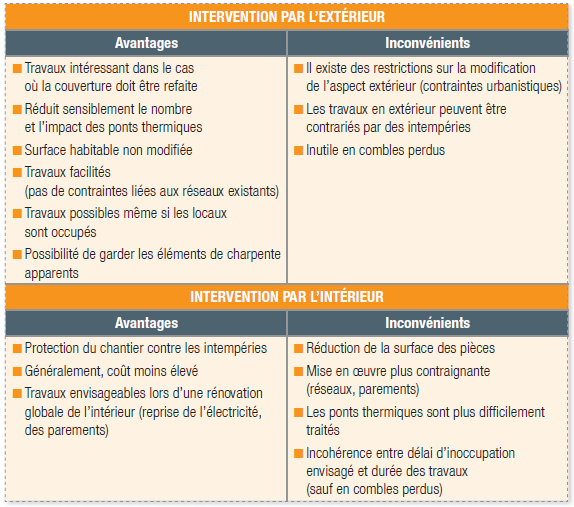 Cette technique permet de conserver le volume habitable et les revêtements intérieurs, mais nécessite de poser une nouvelle couverture.